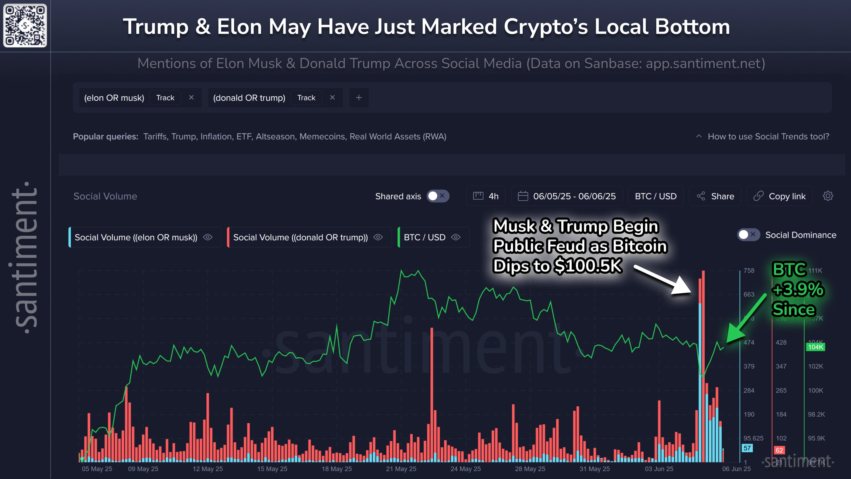 “Genel olarak, büyük kripto rakamlarının tartışma oranı zirveye ulaştığında, piyasanın tersine çevrilmesi olasılığını artırır.”